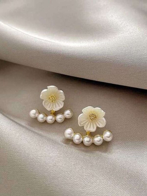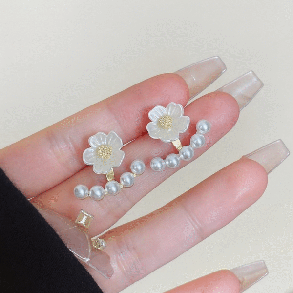 Delicate, dreamy, and effortlessly feminine — Blossom Pearl Arc Earrings are designed for the ones who adore subtle grace with a touch of charm. A gentle white petal flower blooms at the top, while a curved row of luminous pearls rests beneath like morning dew on fresh petals. The balance of softness and shimmer makes this pair feel fresh, youthful, and quietly luxurious.