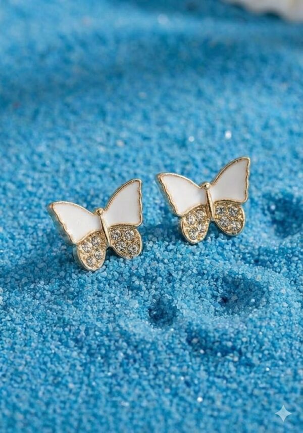 Soft, shimmering, and full of charm — Crystal-Edge Flutter Stud Hoops bring a dreamy blend of innocence and sparkle. With delicate white enamel wings paired with crystal-encrusted lower wings, these butterflies catch light beautifully from every angle. The mini-hoop base adds a modern twist, making them the perfect balance of girly and chic.