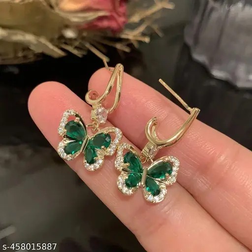 Crafted for women who love grace with a hint of boldness, these earrings are perfect for festive nights, romantic dinners, or simply elevating your everyday sparkle. Lightweight yet striking, Emerald Flutter is a piece that doesn’t just accessorize — it enhances, glows, and captivates.