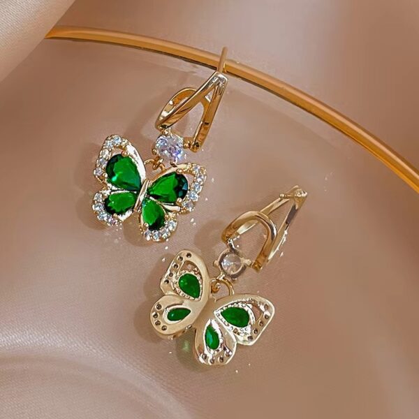 Elegance takes flight. Emerald Flutter shines with vivid green butterfly wings, delicately framed in a halo of brilliant stones that catch the light with every movement. The gold-toned base adds a rich, regal warmth, while the emerald wings bring a touch of mystery — like a butterfly emerging from a garden of luxury.
