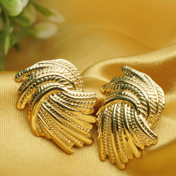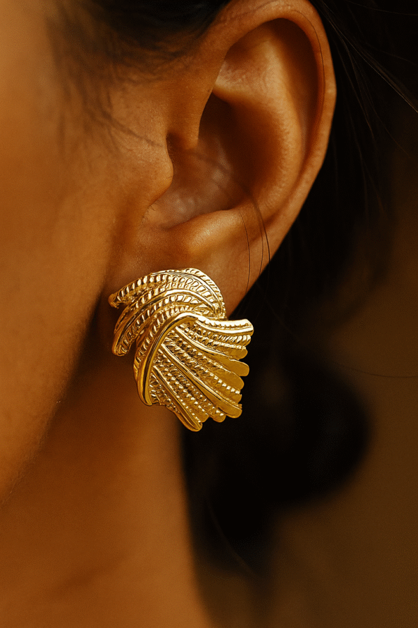 Powerful. Regal. Fiercely elegant — Empress Wings is a design born to stand out. Textured layers of molten gold sculpted like sweeping feathers curve gracefully across the ear, creating a look that is bold yet beautifully refined. Every ridge catches light, every fold feels deliberate — like the wings of royalty in motion.