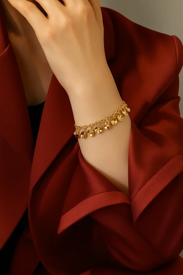 Soft, luminous, and impossible to ignore — Liquid Sunshine Drops Bracelet feels like sunlight captured in metal. Each charm hangs like a droplet of melted gold, shimmering with movement and catching light from every angle. The rhythm of the dangling pieces adds a playful sway to your wrist, turning even the simplest outfit into something warm, golden, and glowing.