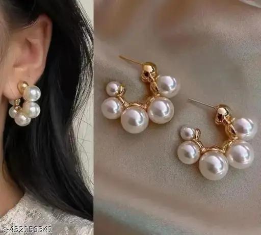 🌕 Moonlit Pearl Clusters – Luxe Pearl Hoop Earrings