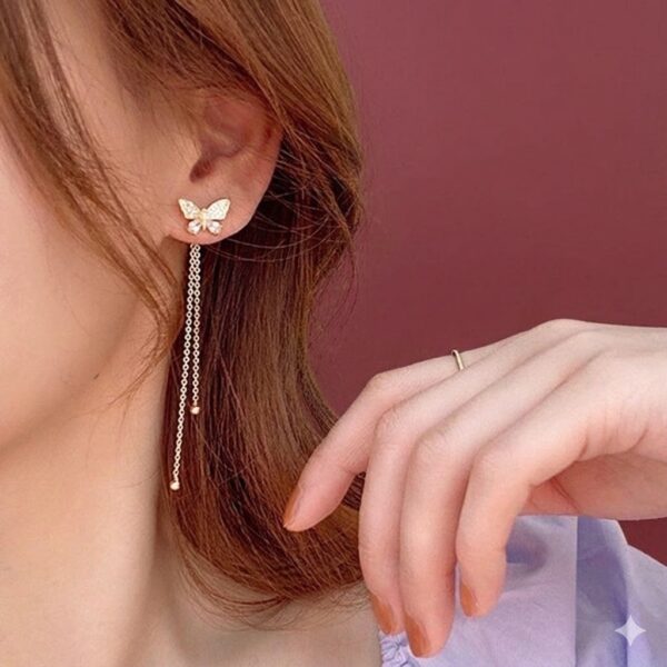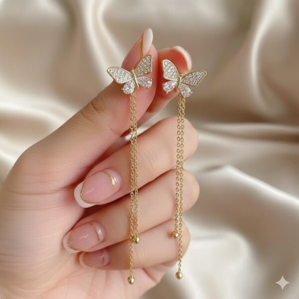 Soft, dreamy and beautifully weightless — Stardust Flutter Dangles bring the magic of a star-lit night to your everyday style. The shimmering butterfly studs rest gently on your ear, while fine gold chains cascade like falling stars, catching the light with every movement. Romantic, feminine and effortlessly eye-catching, they’re made for moments when you want to feel pretty without trying too hard.