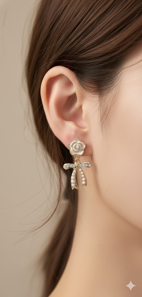 The soft floral detailing, gold-toned finish, and graceful ribbon design make them the perfect accessory for date nights, festive outfits, bridesmaid looks, or any moment you want to feel beautifully feminine.