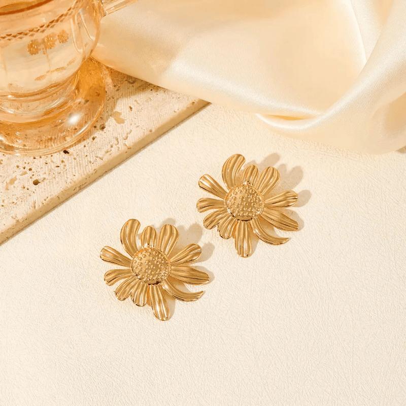 Bring a touch of sunshine to your look with Golden Sunflower Studs. Designed with sculpted golden petals and a beautifully textured center, these statement studs capture the warmth, energy, and glow of a blooming sunflower. Their high-shine finish reflects light effortlessly, making them a standout piece for both day and evening wear.